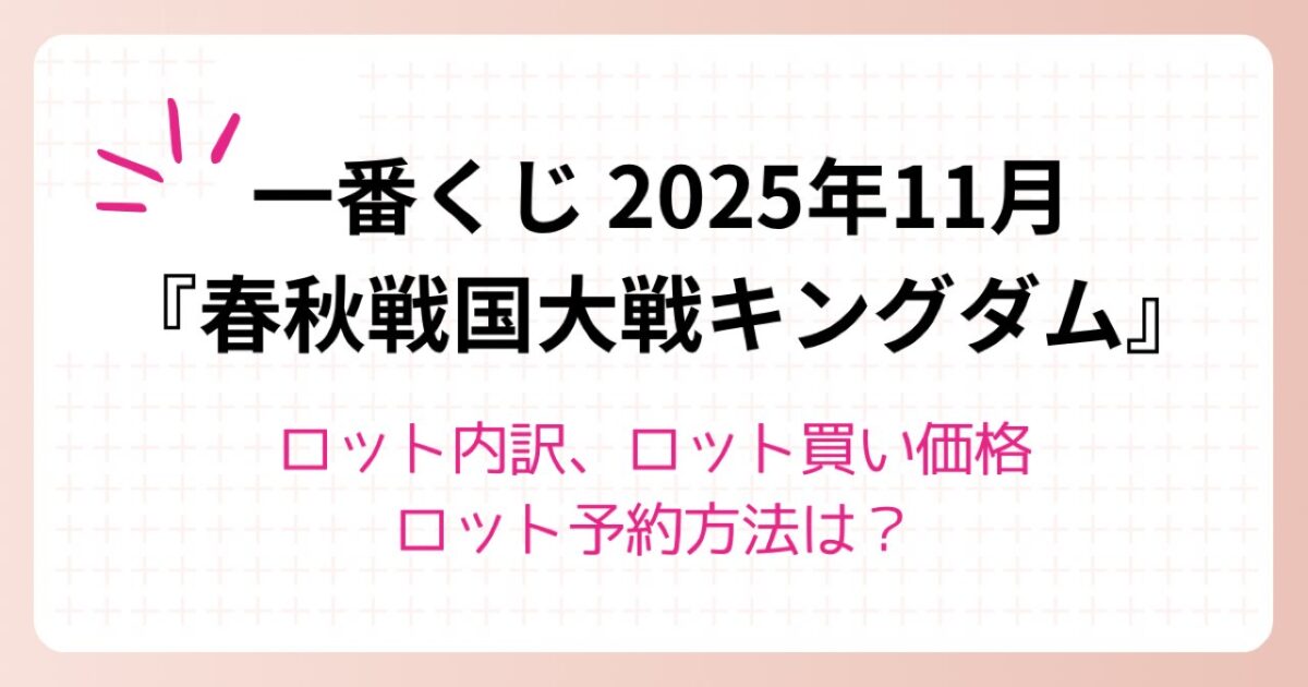 『一番くじ 春秋戦国大戦キングダム The Animation 次代の傑物たち』の取扱店舗、ロット内訳、ロット買い値段、ロット予約方法についてでした。