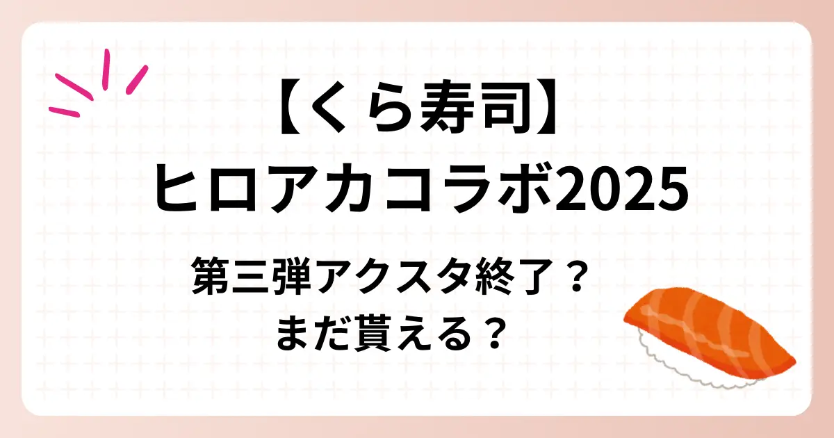 こちらの記事では、くら寿司ヒロアカコラボ第3弾「アクリルスタンド」の配布状況(売り切れ・終了・在庫状況)や混雑状況をまとめました。