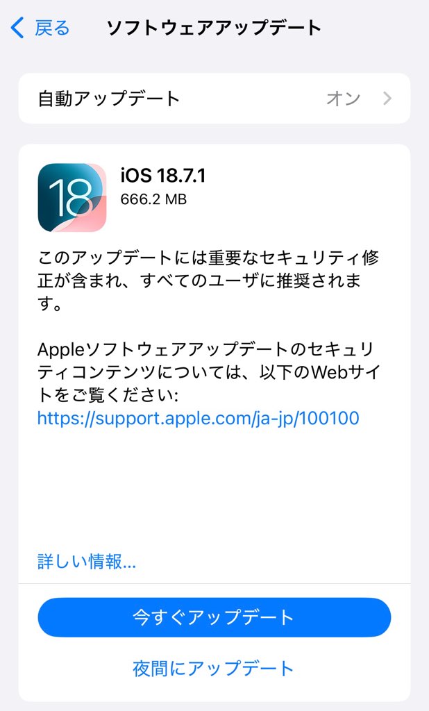 (アプデの有無の確認は、「設定> ソフトウェア更新」の画面で確認可能です)