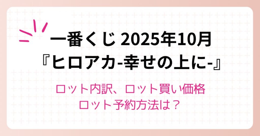 人気回店寿司チェーン「くら寿司」のBT21コラボが、2025年10月3日(金)からスタートすることが発表されました。 こちらの記事では、以下についてまとめました。 本記事の内容 くら寿司BT21コラボ2025販売期間いつまで? 完売で終了してる店舗ある?販売状況... 一番くじ10月ヒロアカ一番くじ「幸せの上に」ロット内訳・ロット買い値段いくら・ロット予約方法