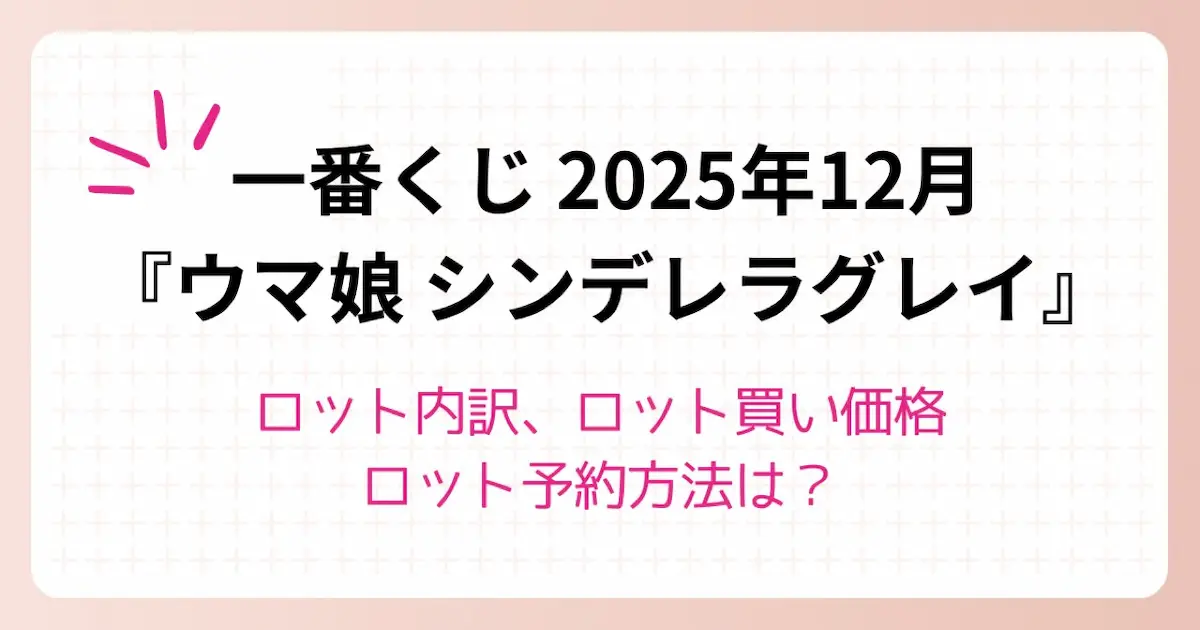 一番くじ「アニメ『ウマ娘 シンデレラグレイ』 灰の怪物vs白い稲妻」の取扱店舗、ロット内訳、ロット買い値段、ロット予約方法についてでした。